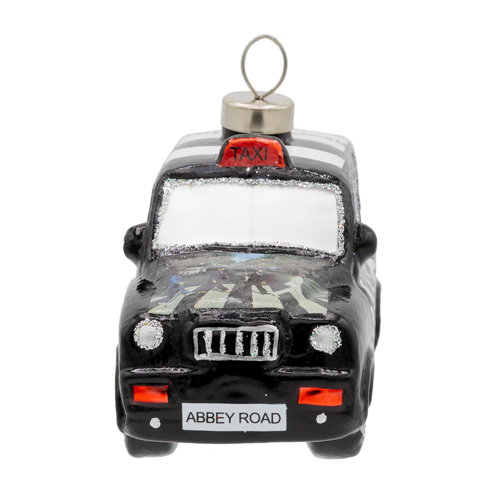 Celebrate the Beatles in iconic style! Our Abbey Road Taxi ornament in sleek black is a must-have for Fab Four fans this Christmas. Hitch a ride to merry melodies!